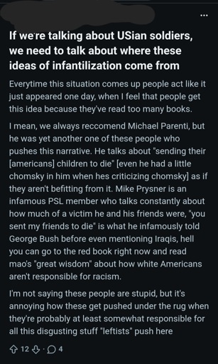 I can’t help but wonder if some speak in a defeated way about the potential of western marxism in part because of the kind of dismal evaluation of the military combined with this kind of view. If the belief, for example, is that US military, active and veteran, are by and large voluntary and enthusiastic war criminals, then the prospects for revolution are going up against all of that, rather than recruiting help from “defectors” (because “how could a revolution trust war criminals to help with a liberation movement”).