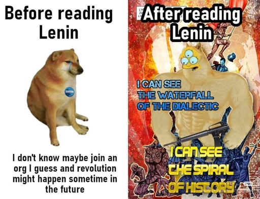 Later in my life after a few months I started reading Lenin… and it’s great because he takes all the concepts you learned (or somewhat learned but didn’t fully understand the first time) and reinforces them, giving you more insight. I started with The State and Revolution, and it worked for me
