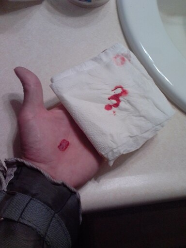 Apparently I need to get some end caps for my handlebars, the sharp uncapped handlebars are what cut me. ☹️🤦