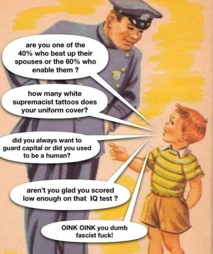 I don’t know in what shithole of a country you guys live to hate cops, but here they are just decent, helpful protectors they ought to be. Never ever met one single piece-of-shit-cop in my life. There surely are rotten apples, but that is due to being human, not being a cop. There is no field of anything where everything’s sunshine and lollipops. Maybe it’s a case of how you treat them? You know, like give respect, earn respect? That thing?