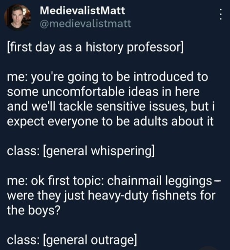 minus-squarevolore@scribe.disroot.orglinkfedilinkEnglisharrow-up17·25 days ago[raises hand] Only if we also agree that codpieces and padded bras are identical in function, if not form. rest of the class: [ fucking chaos ]