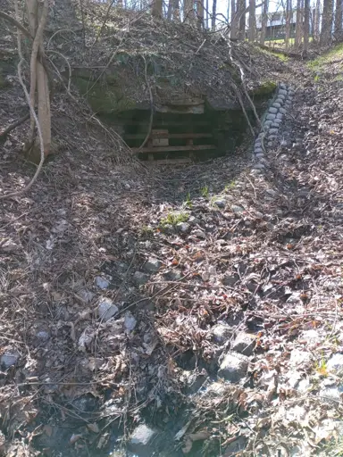 That “abandoned, decaying cobblestone path” is fake, but it is neglected. The stones are fake are there is clearly an artificial underlay, like the whole path was delivered in a roll and they laid it all the way down to the crick.