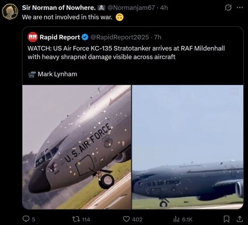 four day special operationer I meantwo week special operationI meanwe woner I mean uhthey shut down the Strait so we shut down the Strait even though it’s already shut downer I mean uh, I don’t know.I mean we kinda are… We let them use our airbases. A few weeks ago an American Hercules literally woke me up and it was en route to the Middle East. I am contemplating sending the U.S. Consulate a strongly worded letter.