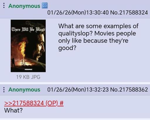 arrow-up1195arrow-down1imageAnon discusses cinema.lemmy.worldMutantTailThing@lemmy.world to Greentext@sh.itjust.works · 10 days agomessage-square25linkfedilink