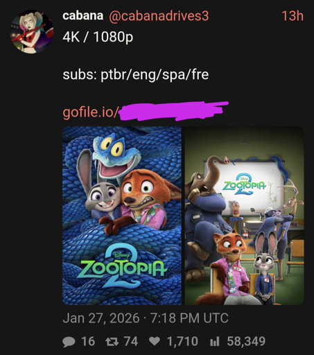 arrow-up1192arrow-down1imagefor some reason, there are twitter accounts distributing movies in cloud storage rather than torrents.lemmy.mlLiamBox@lemmy.ml to Piracy: ꜱᴀɪʟ ᴛʜᴇ ʜɪɢʜ ꜱᴇᴀꜱ@lemmy.dbzer0.comEnglish · 18 days agomessage-square65linkfedilinkfile-text