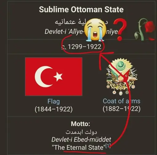 I also wouldn’t be surprised if that motto was something that was said about the byzantine empire prior to it’s fall (as far as states go, that state was very, very old), similar to how “the eternal city” refers to Rome, but I can’t find a good source atm. The best I could find: https://politurco.com/the-myth-of-the-eternal-state-from-the-ottomans-to-the-ak-party.html