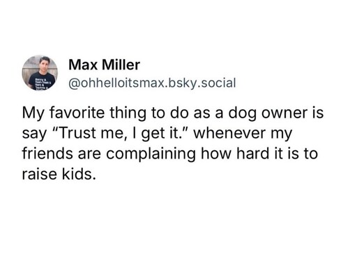 minus-squaresouthsamurai@sh.itjust.workslinkfedilinkEnglisharrow-up1·2 months agoThere’s a lot of similarities, that’s for damn sure. However, since dogs are way smarter than kids, they take less time to learn things