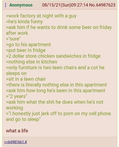 arrow-up1582arrow-down1imageAnon hangs out with a coworkersh.itjust.works🍹Early to RISA 🧉@sh.itjust.worksM to Greentext@sh.itjust.works · 5 days agomessage-square60linkfedilink