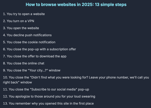 Now age verification should be added to the list, especially if you want to browse 18+ sites like about how to pay taxes or learn to drive