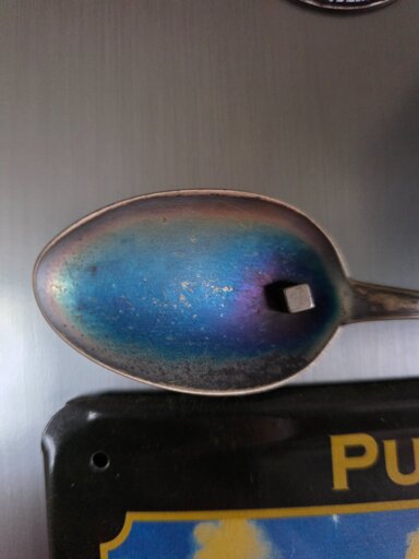 Then how do you explain the bottom side? (And that the rest of the spoon looks regular silver /gray)