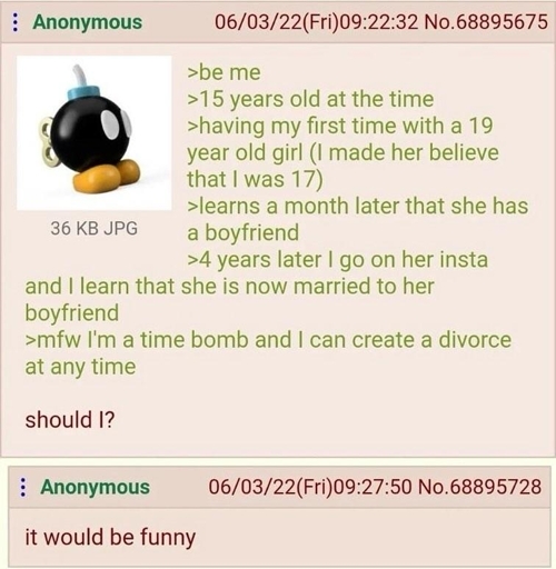 arrow-up10arrow-down1imageAnon is a time bomb lemmy.mlLifeLemons@lemmy.ml to Greentext@sh.itjust.worksEnglish · 1 year agomessage-square4linkfedilink