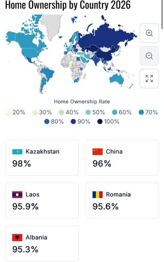 The US is an especially bad case because people move so frequently in the US. And almost no one buys a home with the full amount up front. Taken together this means that most homes are never fully paid off and the house is just sold and a new one bought before any “real” ownership (i.e. the bank isn’t able to reposess your house if you stop making mortgage payments) occurs.
