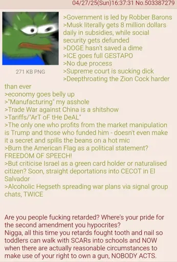 arrow-up11arrow-down1imageStandard tRump supporterlemy.lolnzmaa@lemy.lol to Greentext@sh.itjust.worksEnglish · 1 year agomessage-square11linkfedilink