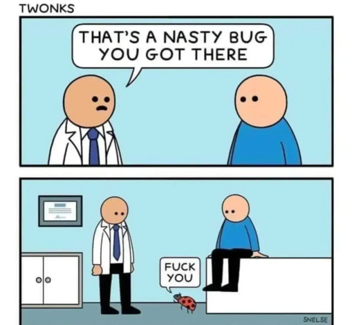 realitista@lemmy.world to Comic Strips@lemmy.world · 2 years agoNasty Bugplus-squarelemmy.worldimagemessage-square0linkfedilinkarrow-up11arrow-down10