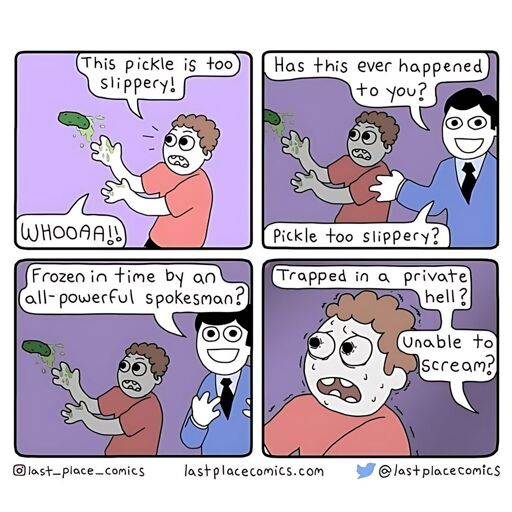realitista@lemmy.world to Comic Strips@lemmy.world · 1 year agoThis pickle is too slippery!plus-squarelemmy.worldimagemessage-square0linkfedilinkarrow-up11arrow-down10